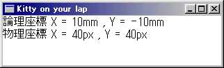 #define MES TEXT("論理座標 X = %dmm , Y = %dmm\n物理座標 X = %dpx , Y = %dpx")