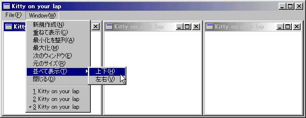 | MDITILE_VERTICAL | MDI クライアントウィンドウの高さ一杯に 左右に並べて表示する |