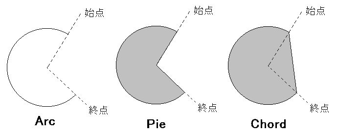 扇形を描画するPie()と弓形のChord()関数です