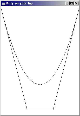 上の放物線がPolyBezierTo()で描いたベジェ曲線です