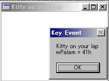 MessageBox(NULL , TEXT("Kitty on your lap") , TEXT("Key Event") , MB_OK);