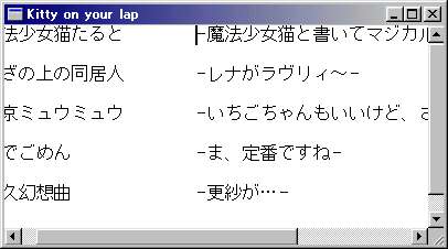 TEXT("KITTY") , TEXT("Kitty on your lap") ,