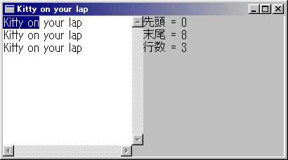 TEXT("先頭 = %d\n末尾 = %d\n行数 = %d") ,