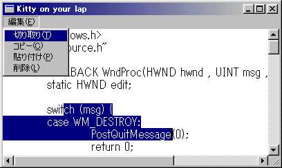 メニュー項目が選択されると、対応したメッセージがエディットコントロールに送られます