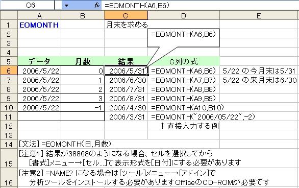 以前の EOMONTH の説明