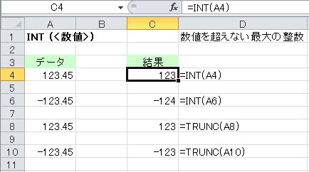 - (注)INT関数とTRUNC関数の違いはマイナスの場合にあります