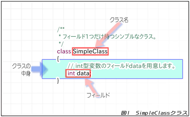 SimpleClassRunnerクラスは「そのクラスを使う側」なので、今はクラスとは考えないでください(この関係については「4.5 main()メソッドと「実行するクラス」」で説明します)。