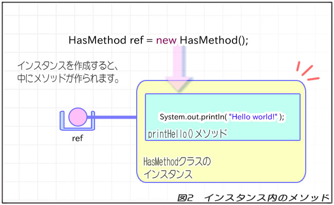 // HasMethodクラスの参照型変数とインスタンスを作ります。 HasMethod ref = new HasMethod();