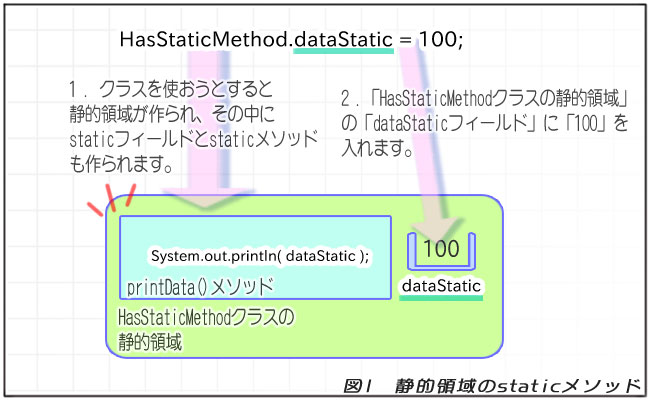 // staticフィールドに数値を入れます。 HasStaticMethod.dataStatic = 100;
