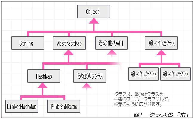 クラスは、Objectクラスを「一番上のスーパークラス」として、まるで木のようにサブクラスを作っていきます。