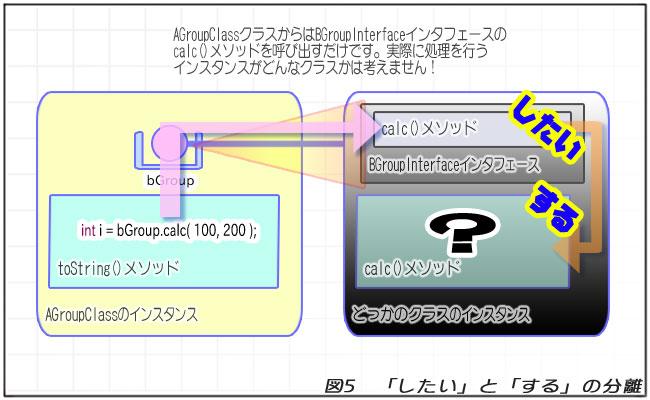 Aグループの「したい」を、インタフェースを使って実現したわけです。