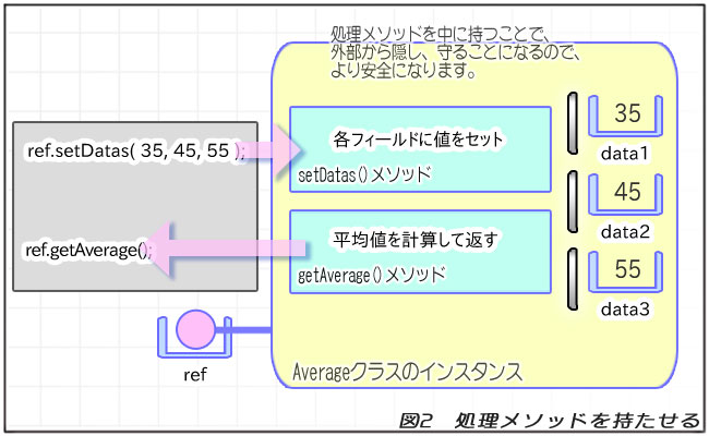 つまり、クラスが「フィールドを使うメソッド」を持つことで、「適切な使い方だけが可能」になったわけです。変な使われ方をしないようになったわけですね。