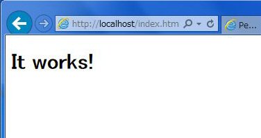 以下のように、「It works !」の画面が表示されたら、インストールは成功です。