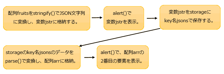 このページでは、配列をStorageに保存する方法を見ていきます。 1つはtoString()を使って文字列に変換して保存する方法、 もう1つはJSONという形式を利用する方法です。