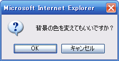 <script> var flg; //真偽を入れる変数の宣言 flg = confirm("背景の色を変えてもいいですか?"); //真偽の代入 if (flg == true) document.bgColor = "green"; //真なら背景色変更 </script>