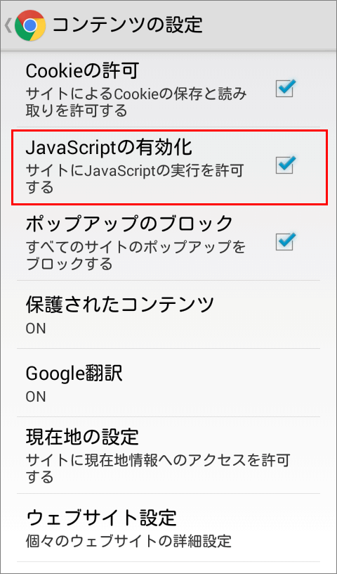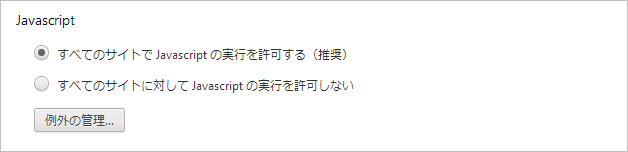 メニューの設定→(詳細)→コンテンツの設定を開きます。 そこにJavaScriptの有効化という項目があります。 ここでJavaScriptを有効/無効にできます。