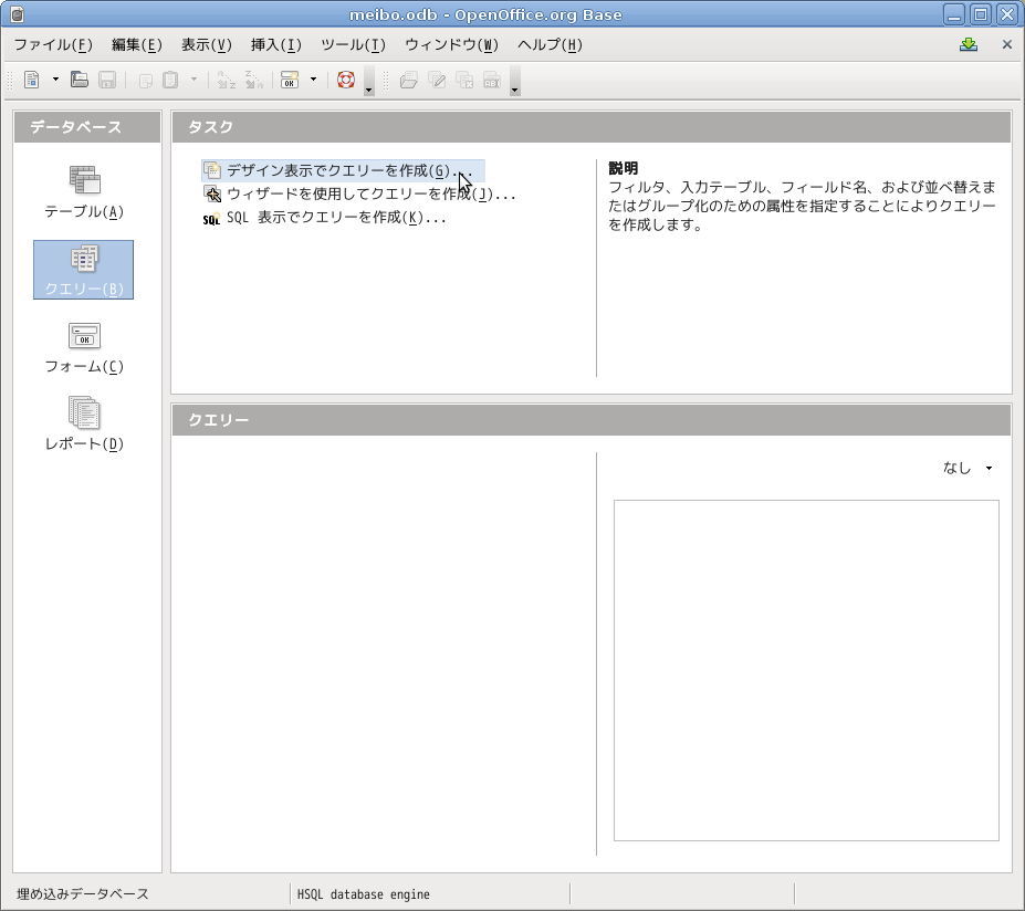 OpenOffice.orgのBaseが起動します。