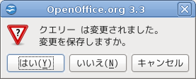 クエリーが正しくできたので、クエリーの[×]を押すと変更を保存するか確認してきました。[はい]を選択します。