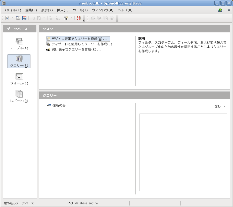 「住所のみ」というクエリーが現れました。