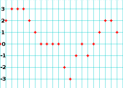 0,2,3,3,3,2,1,0,0,0,0,-2,-3....となります。