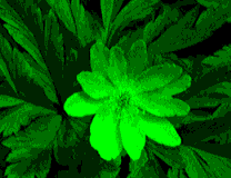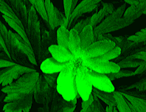 以下の例は、緑のグラデーションを256段階から8段階まで、何段階に区別するかを変化させて、どのように記録されるかをみたものである。