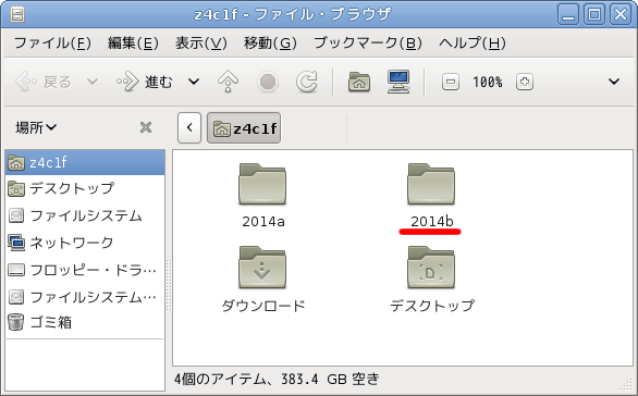 GUIでも確認します。ユーザーホームに2014bフォルダができているはずです。
