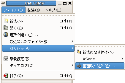 gimpから取り込むときは、取り込んだ画像がgimpでの編集中になることです。