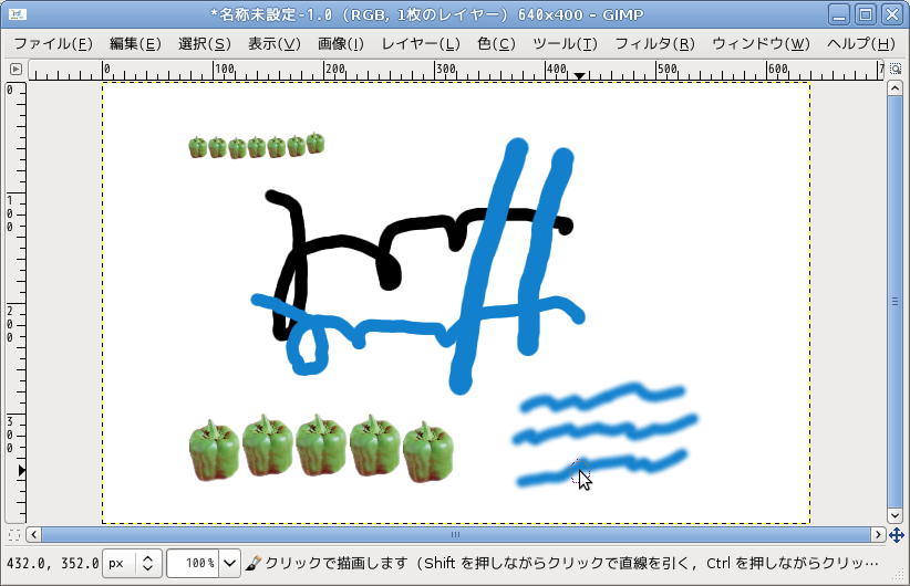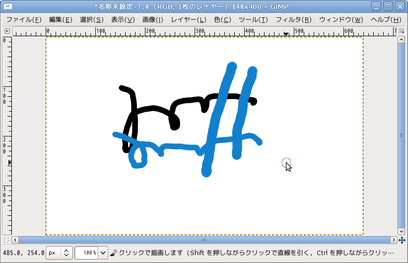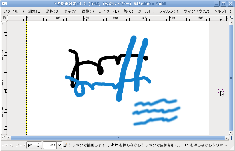 キャンバス上をドラッグすれば描くことができます。