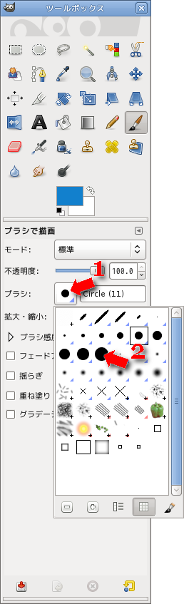 ツールボックスでブラシ(絵筆)