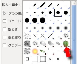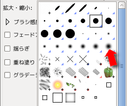 この部分で筆の太さや形を選べます。大きな●を選ぶと