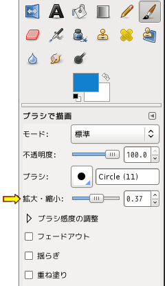 絵筆の大きさを変更するのには 拡大・縮小 も使えます。。