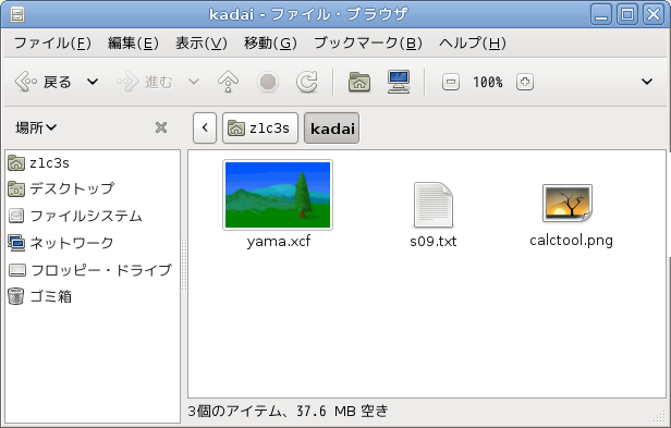 ここではユーザーホームの中のkadaiというフォルダを指定したところです。