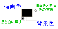 背景色も描画色同様に色を変えることができます。白に戻したい時は描画色を黒に、背景色を白に一度に戻すボタンも使えます。