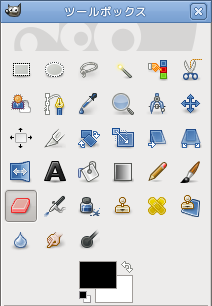 消しゴムは今のところ背景色を塗る絵筆です。背景色は普通白になっていますので消えるように見える訳です。背景色は描画色とセットで表示されています。