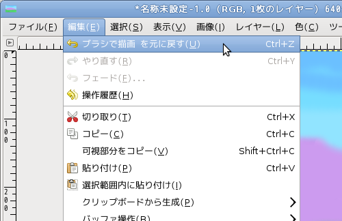 「取り消し履歴」の利用はGimpに慣れるまで控えたほうが無難です。利用に当たっては次の点に注意してください。