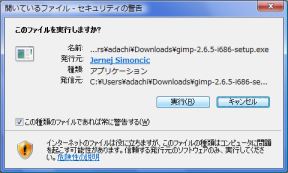 Gimpに限らず新しいソフトの導入は不具合を持ち込んだり,ウイルスの危険もあり一応警告が出ます。管理者の許可が必要だとのメッセージがでる場合もあります。