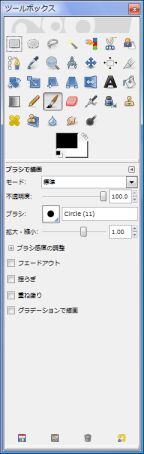 ツールとそのオプションのパネルです。大きな変更です。メニューがありません。