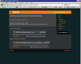 「GIMP2を使おう」から GIMP for Windows をたどると http://gimp-win.sourceforge.net/ に着きます。ここのdownloadのページで GIMP for Windows (version 2.6.5) をダウンロードできます。