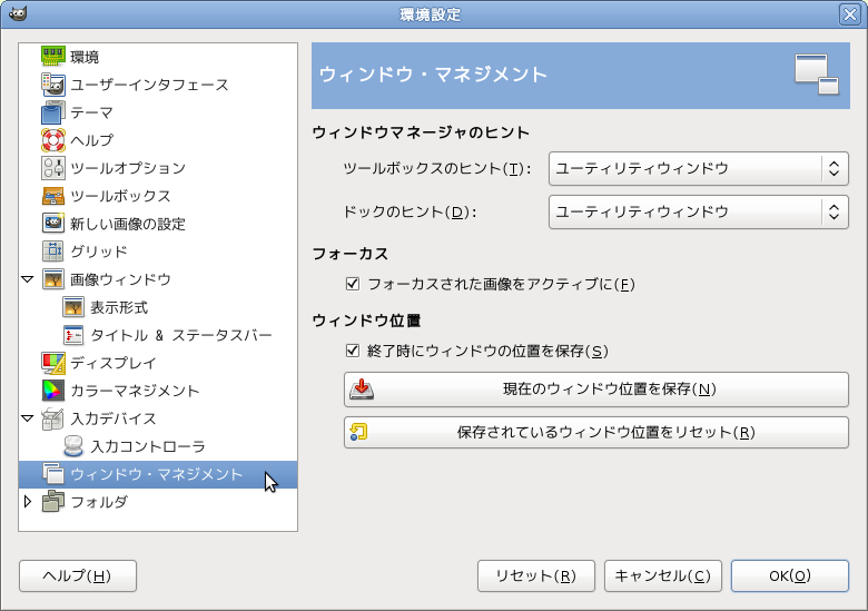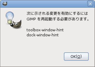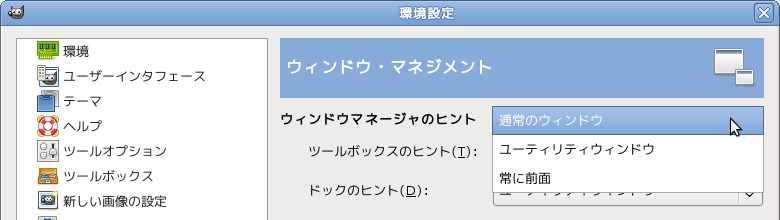 ウィンドウマネージャのヒントの項目でツールボックスのヒント、ドックのヒントの両方が「ユーティリティウィンドウ」になっているのが原因です。