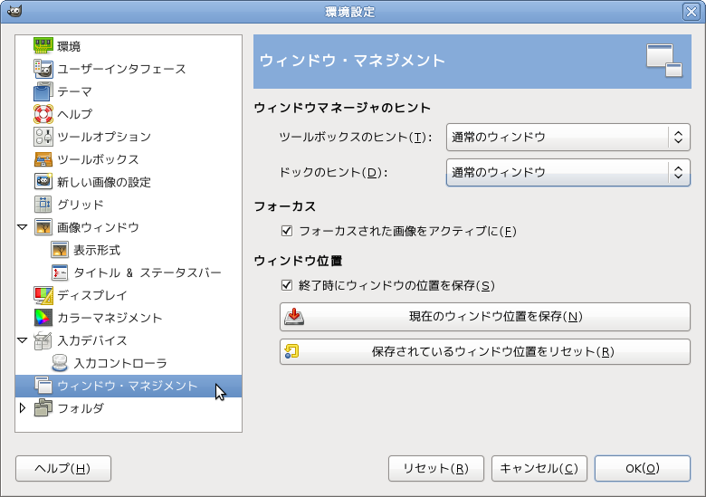 通常のウィンドウになりました。右下の[OK]を押して設定を保存します。