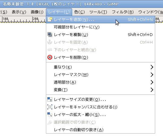 紙(イメージ)のメニューから[レイヤー]-[新規レイヤー]を選択します。