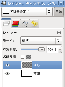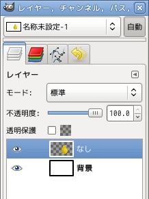 これでレイヤーができました。見た目は全然変化なしですが、レイヤーのドック(ウインドウ)を見ると背景の紙の上に透明な紙があり、「なし」というレイヤーになっています。