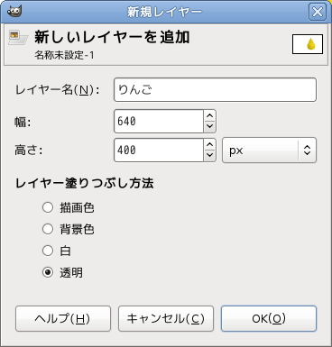 ナシができたら、前回と同様の操作でもうひとつレイヤーを作ります。今度は「りんご」という名前にしましょう。