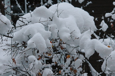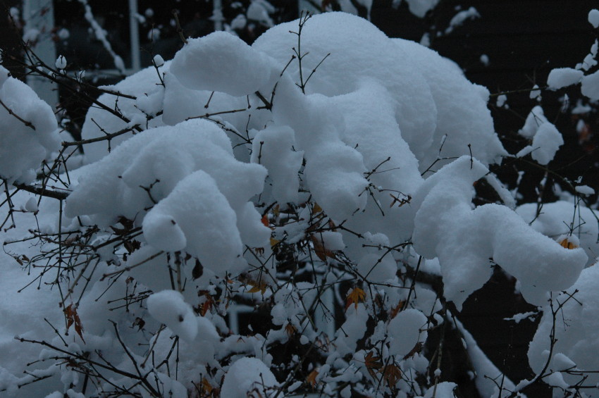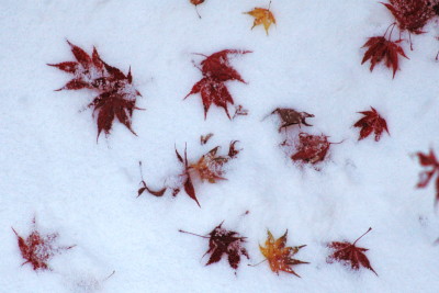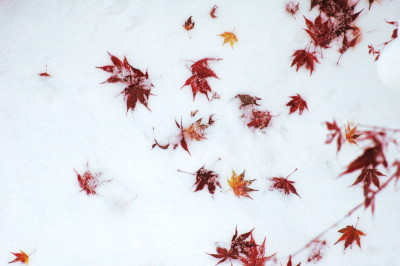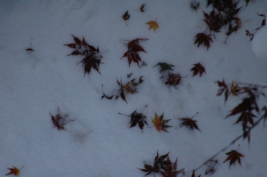 雪が明るいために紅葉が暗く写り色がでません。雪も少し青みをかぶっています。雪を白くしつつ葉だけを赤くするのはコツがいります。本物より赤くなってしまったかもしれません。2つ目のものは切り取りもしています。