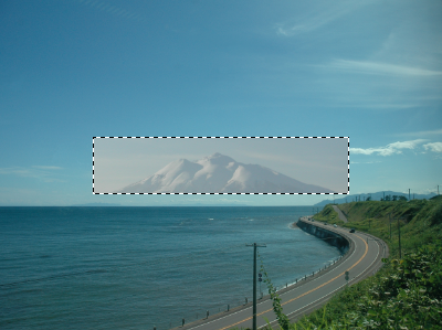 下の元絵を使って上記の合成をやってみなさい。岩木山の写真は前のページのものと同じである。コンピュータの性能により動作が遅い場合は小型セットを使うこと。