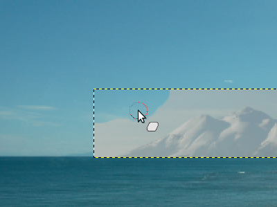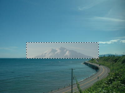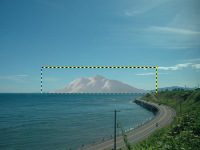 を使っています。これは切り抜きツールとほぼ同じ使い方で,長方形部分を選択状態にします。