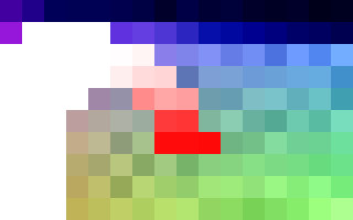 解説 模様の境界ははっきりしたまま保たれますが、輪郭のギザギザはそのまま拡大されます。 右側の背景部分もタイルの様でなめらかな変化には見えません。 |