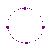 通過をする点を多くすれば精密な図になりますが、曲がり方を制御する点を上手に配置することで通過点の指定を少なくしてもかまわないこともあります。右の例では四つの通過点で円を表現できています。