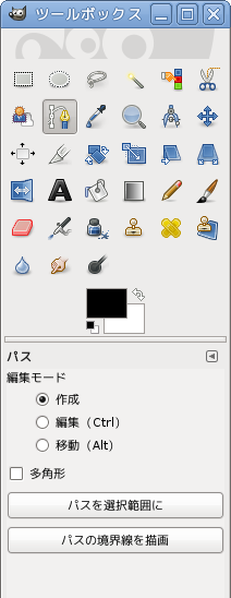 このツールで描くのは「パス」といいます。線そのものではありません。「パス」を描いてからそのパスにそって線を描いたり、パスで囲まれた部分を塗りつぶしたりして使います。