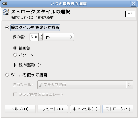いろいろ設定できますが、まずは線幅を決めて、右下の[ストローク]をクリックするとパスにそった線が描かれます。